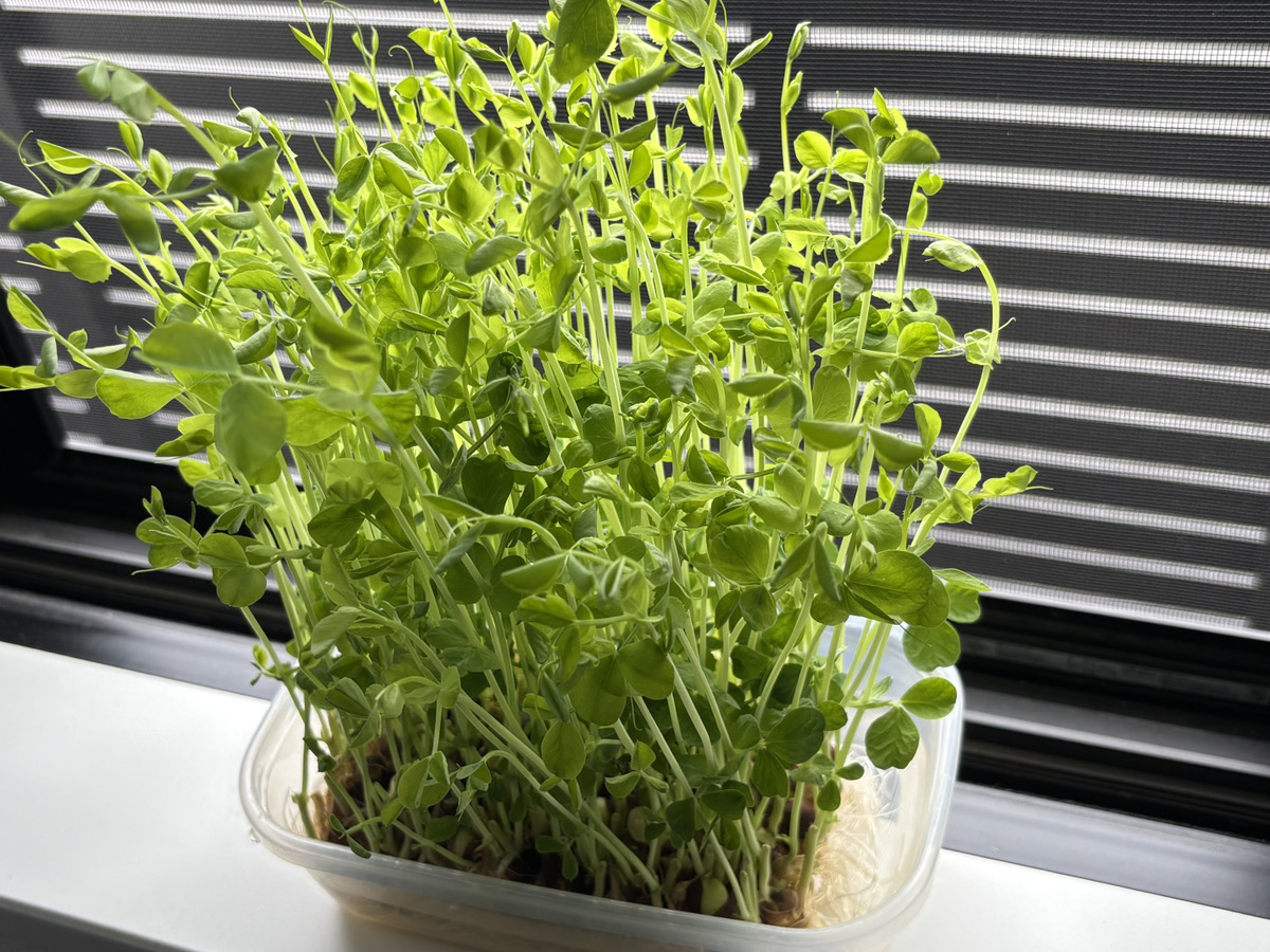 余談ですが、家で育てている豆苗が地味にグングン成長しています。