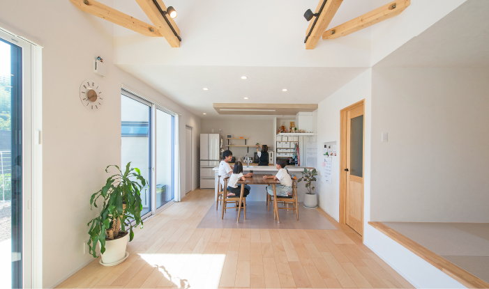 両親が近くに住んでいて、将来は同居も考えているため、子供が巣立った後、年を重ねても無理なく暮らせる平屋が希望でした。まずは、町内で土地を探すところからスタートしました。